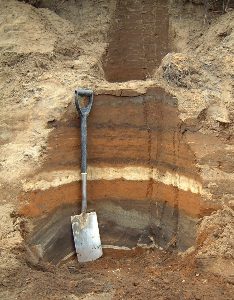 Photo showing different coloured tephra layers with labels